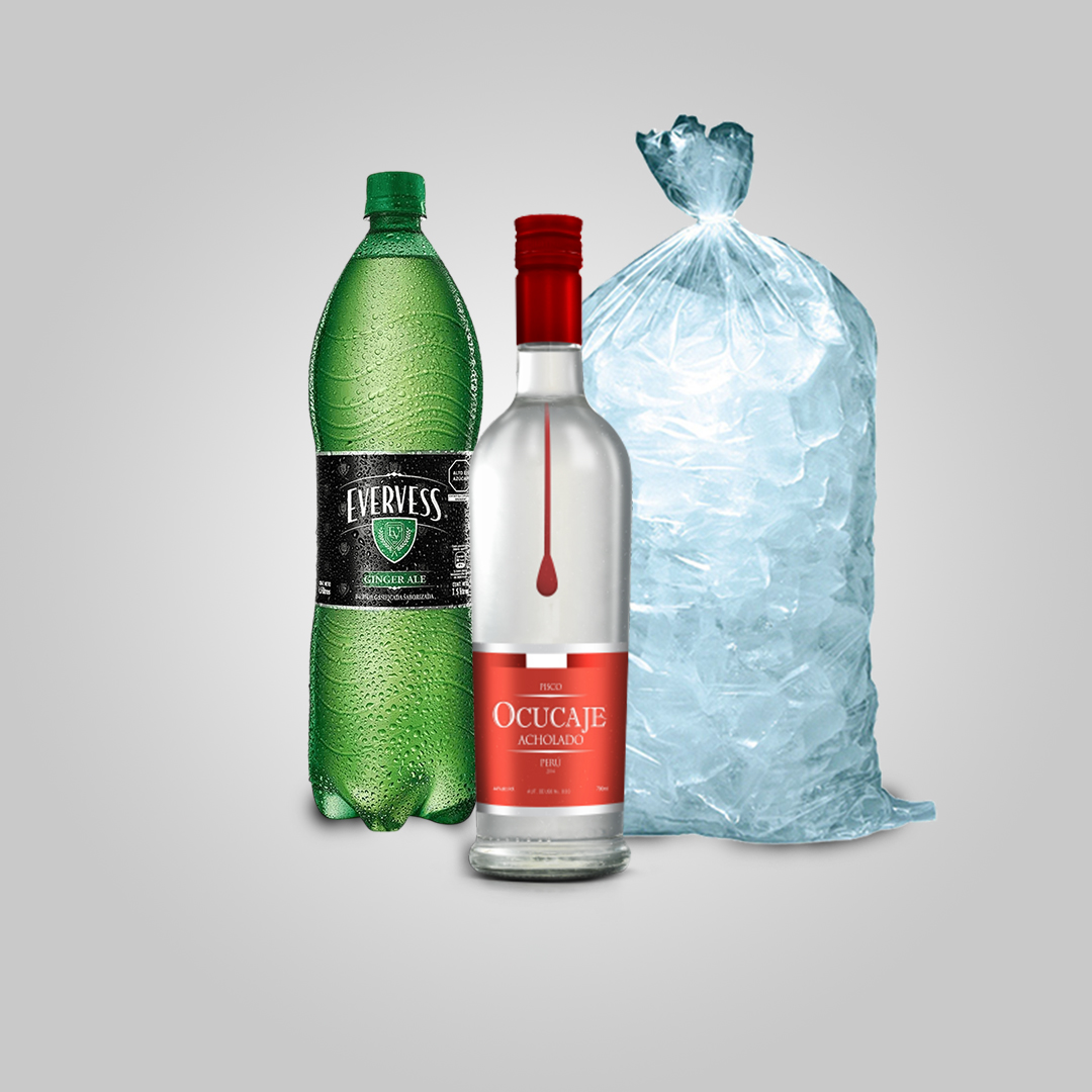 Ocucaje Acholado 700 ml + Evervess 1.5 Lt + Hielo 1.5 kg