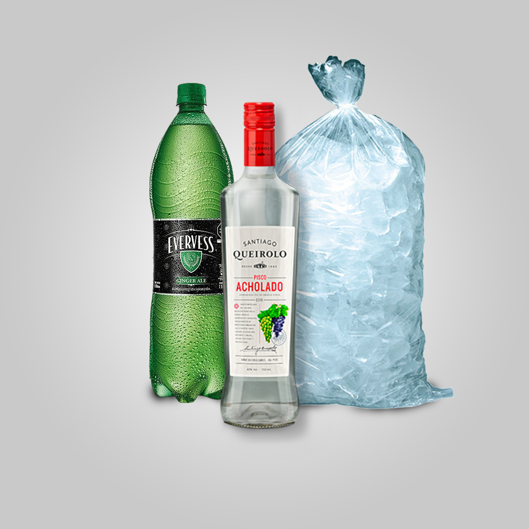 Queirolo Acholado 700 ml + Evervess 1.5 Lt + Hielo 1.5 kg cantidad